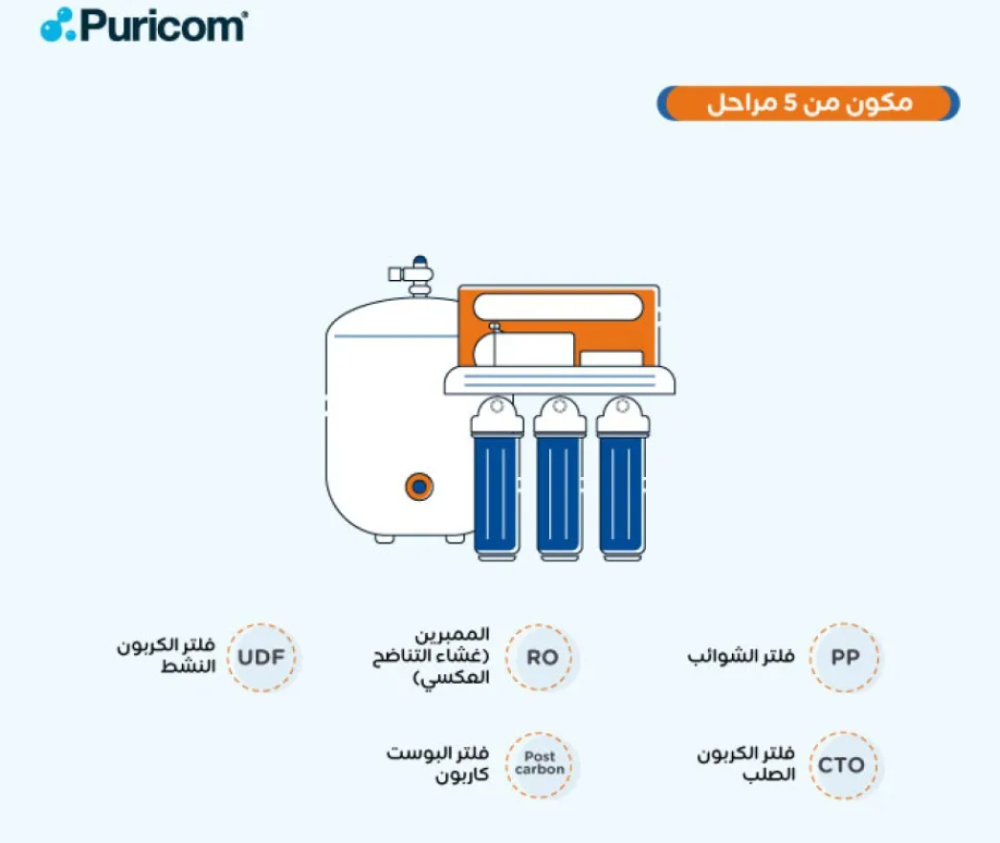 - عدد مراحل الفلتر : 5 مراحل ويمكن إضافة مراحل اخرى